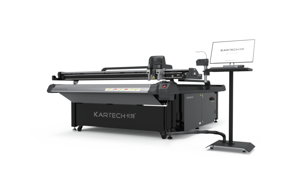 The Kartech Flatbed Cutting Machine is a professional digital flatbed cutter designed for high-precision and high-speed cutting. It works with a wide range of materials such as paper, cardboard, plastic, foam, leather, and textiles, making it a versatile solution for different industries.